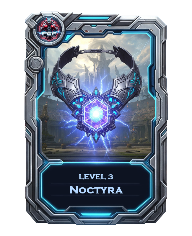 <table><thead><tr><th width="116" align="center">LVL</th><th align="center">Necklace</th><th align="center">Upgrade Success Rates</th><th align="center">Level Drop Chance</th><th align="center">Burn Rate</th><th align="center">CFC Cost</th><th align="center">Power</th></tr></thead><tbody><tr><td align="center">Lv.1 </td><td align="center">Solyra</td><td align="center">-</td><td align="center">-</td><td align="center">-</td><td align="center">-</td><td align="center">5</td></tr><tr><td align="center">Lv.1 → Lv.2</td><td align="center">Etherealis</td><td align="center">🔶 75%</td><td align="center">⚠️ 15%</td><td align="center">🔥 10%</td><td align="center">100 CFC</td><td align="center">7</td></tr><tr><td align="center">Lv.2 → Lv.3</td><td align="center">Noctyra</td><td align="center">🔶 70%</td><td align="center">⚠️ 20%</td><td align="center">🔥 10%</td><td align="center">200 CFC</td><td align="center">11</td></tr><tr><td align="center">Lv.3 → Lv.4</td><td align="center">Auralith</td><td align="center">🔶 65%</td><td align="center">⚠️ 25%</td><td align="center">🔥 10%</td><td align="center">400 CFC</td><td align="center">17</td></tr></tbody></table>